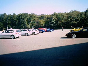 | この日の参加車たちです。毎回、このゆるやかジムカーナに参加しているみたいで、見たことのあるクルマもたくさんいました。ドリフト走行している黒のFCが速くてカッコ良かったです。やはりうまい人は違いますね〜。 |
