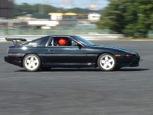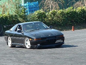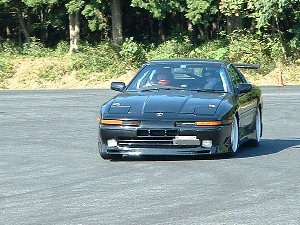 ちなみに同じポイントでのおいらのスープラの画像がこれです。 車体の向きが全然違いますよね。。。もっとクルマ全体を振り回すようにしないとダメでしょうか。あとはアンダーステアを殺すようなステアリング操作が必要だと実感しました。外から写真を撮ってもらうと良い勉強になります。 |