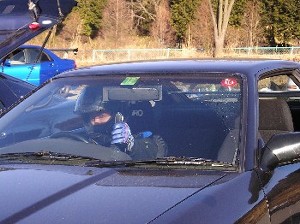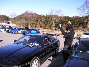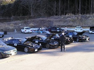 走行前の緊張をほぐすかのように踊りまくる001さん(爆)。 朝1回目の路面温度の低い状態でも、一番アクセルを踏んでいたのが001さんでした。(‥;) そして、お昼頃ちょうど温度が高くなってきた頃にベストラップ更新を果たしました!001さんは毎回ベストラップ更新しているようなのでホント凄いです。 |