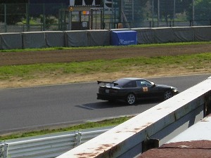 同じくダンロップ手前コーナーでスカイラインをアオりまくるサカイ号。 サカイさんは筑波2000初走行だったんですが、後半になるとかなり慣れてきたみたいで、いつものようにアクセル全開できてきたようです。 ラジエターやオイルクーラー装着の効果も高かったみたいですね。(^^) |