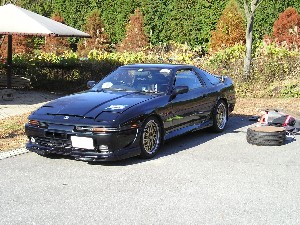 余裕の表情を見せるサカイさん(笑)。 ゴールドのBBSホイールが目立ちます。 |