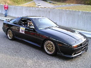 サカイ号。 この日は一足早くしのいサーキットに到着していて、すでに2ヒートほど走っていました。 またもやベストラップを出していたようですね〜。 |