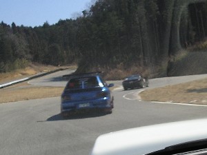 インプレッサに追い掛け回されるままま号。 シケインを抜ければアクセル全開でぶっちぎりだぁ(笑)。 |