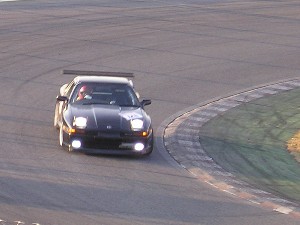 裏ストレートエンドの夢朗号。 足回りはほぼノーマル状態なので、最終コーナー手前でブレーキングするとフロントがグイっと下がるのがよく分かります。 コーナー手前の直線部分でしっかり減速、クリッピングで再加速、の定石をしっかり守っていますね。(^^) |