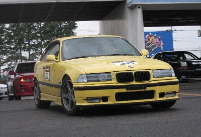 受付直後に3台並んで記念写真。 まだこの時は土砂降りになることなんてちっとも思っていませんでした。(^_^;) |