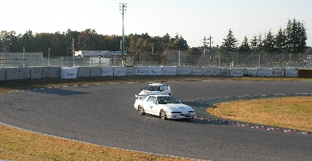 すぷら号が2ヘア立ち上がりでもたついているところでチャンスと見て一気に抜く! 後で聞いてみたらすでにタイヤがタレてきてしまっていたそうです。 この後も2台は少しだけ絡みましたが、いつもとは違った走行会を味わえました。(^^) |