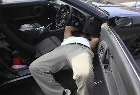 サカイ@JZA70さんによる「空中一人ジャーマンスープレックス」(爆)。 いかに窮屈な格好で作業していたことが分かるでしょう。(^_^;) それから、作業終了後はシャンプーを入念にしてくださいね。 頭がかゆくなりますよぉ・・・^^; |