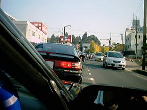 お昼ご飯を食べに移動している所。 右折信号待ちで並んでいるのは全部70スープラです(爆)。 対向車も何気にちょっと避け気味なのが笑えます(爆)。 |