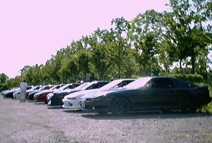 餃子を食い終わった後、運動公園の駐車場で一列に並べた所。 しかしすごく日差しが強くなってきたので、すぐに木陰のある涼しい方の駐車場へ移動しました(爆)。 |