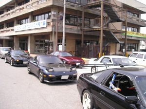 二階の休憩所でスープラ談義にのめり込んでいる3人(笑)。