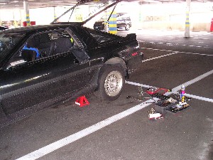 オフ会場ですでに足回り交換をやっていたサカイ号。