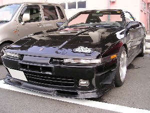 会場のオートウェーブから一番近いところに済んでいるたかぴょんさんのスープラ。 クリアレンズでワイドになっているフロントウィンカーがかっこいいですね〜。 |