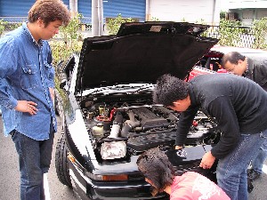 この日はフロントバンパー&フェイシャー交換していた飛び入りJZA号。 みんなが手伝ってくれたおかげで無事作業は完了しました。 |