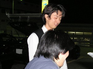 焼肉食べ放題が終わった頃に仕事帰りで合流したサカイさん。相変わらずいいタイミングで登場しますね(笑)。 必死に絡むたつさんですが、サカイさんは余裕の表情です(爆)。 |