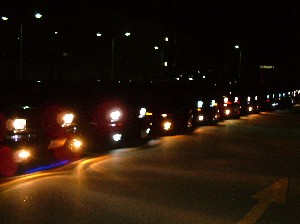 列の反対側から撮影したところ。 リトラの光がキレイに並んで見えますね〜。(^^) 最後にみんなで円陣を組んで挨拶して解散となりました。 駐車場を一斉に抜け出るところを見ておいらは感動しました。 今回もまた楽しいオフ会が開けて本当に良かったです。(^^) |