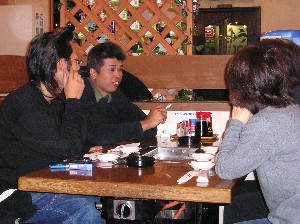 焼肉食べ放題の店に入ったところ。 こちらの席はタバコを吸う人たちの集まりです(笑)。 |