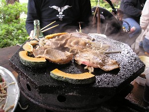 第2目的地のぶどうの丘で食べたバーベキュー。 デカイ肉ともやしを混ぜてタレをジュゥジュゥいわせながら焼くと最高にうまい! この画像を見ていたら思い出してよだれが出てきました(笑)。 |
