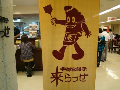 餃子専門街の「来らっせ」。 この先は広いホールにたくさんの餃子店がいっぱい。 好きな餃子を1人前から注文可能。チョイ食いしたい人には超オススメ! |