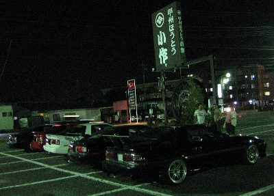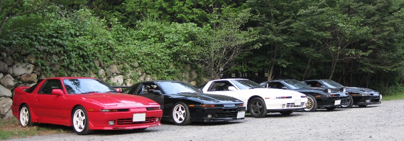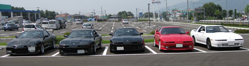 勝沼ICを降りて近くのオートバックス駐車場で集合写真! 最近のオフは黒系のスープラの参加率が高くなりましたね。 あと、白いスープラは亀山さんの2号機スープラです。久々に見たかも。 |