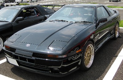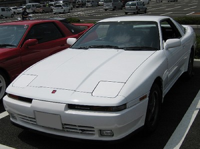 亀山さんのスープラ2号機。 ホイールも含めたフルノーマル車。いつもながらピカピカです。 コダワリの七宝焼きのフロントノーズがポイント。 |