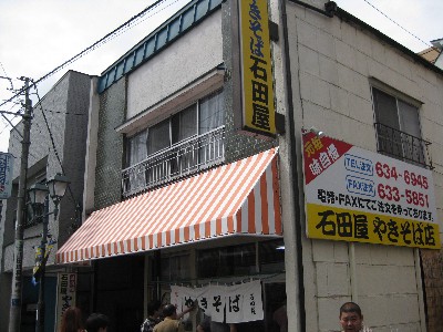 めんめんから徒歩1分、ていうか角曲がってすぐのところにある焼きそば屋の石田屋。 大通りから中に入ったところあるのでちょっと分かりにくいかもしれませんが、同じく黄色の看板を目印にすれば大丈夫! |