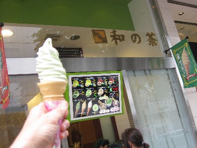 そしていつもの抹茶ソフトの「和の茶」へ。 抹茶のほかにほうじ茶ソフトとプレーンソフトがあります。その時のお好みで! |