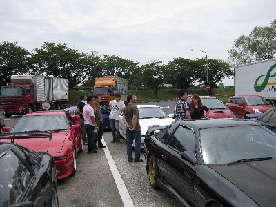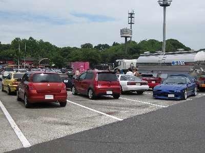 トラックとトラックの間のすき間に詰め込まれたマシンたち(笑)。 ここで久々の再開に喜び楽しむひと時がありました。(^^) 定例のオフ会ってこういう一面もありますね! |
