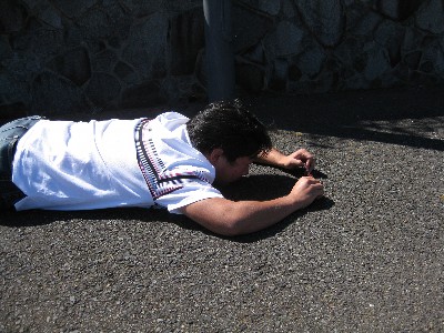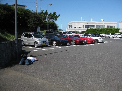 駐車場の隅に死体が?!(爆) いや、もぞもぞ動いているので死体ではないようです(笑)。 近寄ってみると、、、 |