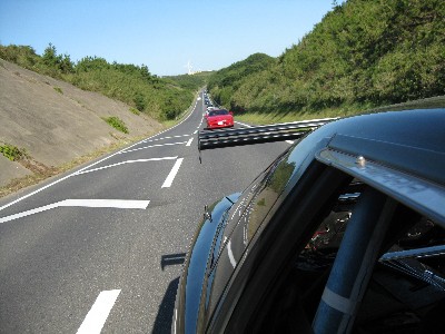 房総半島横断途中の山道での一枚。 気持ちいいくらいまっすぐな道です。(^^) ちなみに、運転しながらのデジカメ撮影は危険なので無茶しないように!(^_^;) |