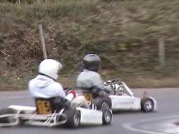 第1コーナーでのごすけさんの走り。 ごすけさんは体重が軽いので、コーナーでもインをうまく付いて走ることが出来ました。 |