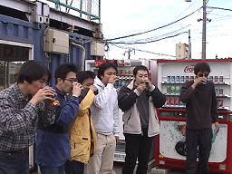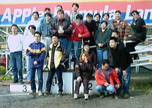 集合写真。 カートが終わったあとはみんな満足そうでしたね〜。(^^) 一番右側にタチの悪そうな人がいますが(爆)。 |