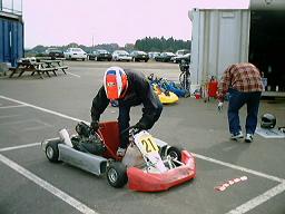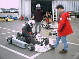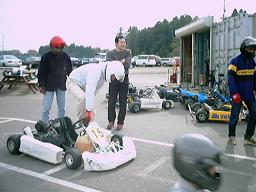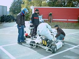 これは「ノグリンズ」のドライバーチェンジの様子です。 おおいずみ(弟)さんのアドバイスにより、完璧なセッティングが行われていました。 う〜ん、これはチームの結束力が違いますね〜。(^_^;) |