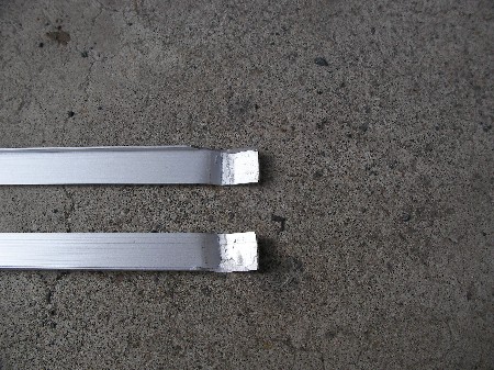 材料は長いアルミの棒です。ホームセンターで数百円で買えちゃいます。(^^) 長さにもよりますが、2本買っておくと安全です。 これをリアハッチの長さに短く切ります。 |