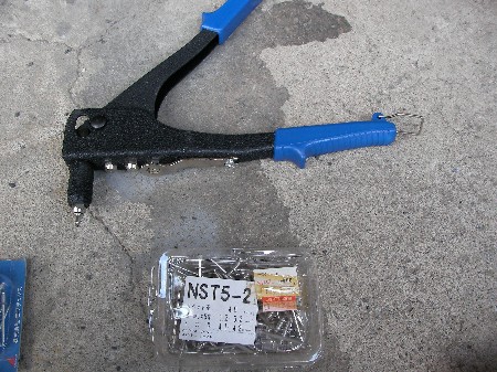 リベットは普通のリベットでOKです。 ただし、雨水によるサビ防止のためアルミ製のリベットを使うのが良いですね。 あと2年に一度外すことになると思うので(笑)、そのためにもアルミ製の方が無難です。(^_^;) |