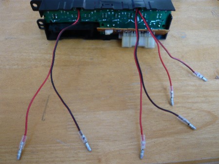 | 各スイッチ、温度、風量の配線にそれぞれオスのギボシを付けます。 |