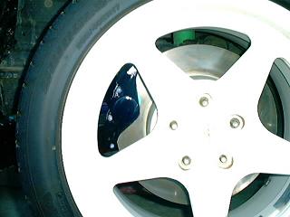 最後にホイールをつけた状態で撮った画像を載せます。 フロントの時ほどキャリパー逃げに付いては厳しくないようですが、17インチホイール装着は必須ですね。それから、ローターの内側の数センチの部分が使われないというのも同じようです。 また、キャリパーを交換してからブレーキダストが非常に多くなりました。(^_^;) 白いホイールを履いている人はちゃんと内側まで洗いましょう(爆)。 満足度100%! |