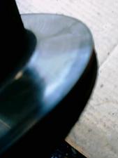 外した70スープラ純正ローターの拡大図。 それほどレコード状の凹みができていませんでした。まだまだ使えそうです。 |
