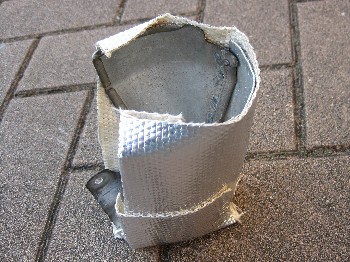 遮熱布を巻きつけるとこんな感じになります。 ポイントは切れ角の部分を覆うことと、クラッチマスター本体側を重点的に覆うこと。 クラッチマスター本体がフロントパイプに一番近いところですからね。 貼り付ける前にペーパー当てと脱脂は忘れずに! |