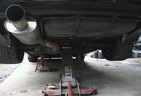 リアをジャッキアップします。 今回からはリップを擦るわけにはいきません(笑)。 ジャッキではなく、リフトがあるともっと楽になるかもしれないです。 |
