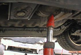 ミッションを下から持ち上げないとミッションマウントは外せません。 触媒の部分についているステーも一緒に持ち上がるので先に外しておいた方がいいかもしれません。 |