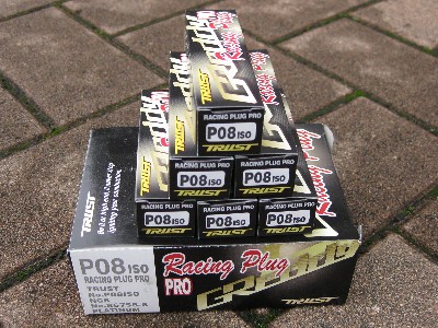 トラスト製レーシングプラグPro。 もちろんおいらお気に入りのプラチナプラグです。 今回も8番を選びました。ていうか、8番がちょうどいい感じ。 |