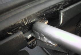 内装をめくりながらピラーバーを取り付けます。 強引に引っ張ると中の補強板がパキンと良い音をたてて割れます(笑)。 |