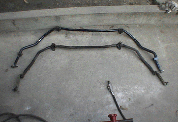 下が純正スタビ。 重さ的には純正のほうが軽いが細いですね。 |