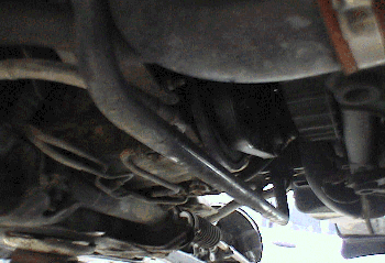 アンダーカバーをはずしたところ。 純正スタビは結構太いですが、車重があるため ロールを押さえられないようです。 |