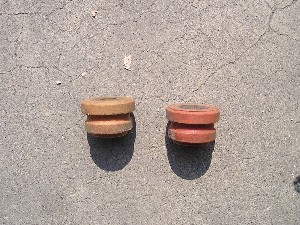 バンプラバー。全然潰れていないことから、以前の車高の状態では全く底付きしていなかったことになります。これなら、オーバーホール後に底付きがあれば、そのおかしな挙動をつかむことができますね。 オーバーホール後はショートストローク加工もされているということで、バンプラバーを3分の2にカットしました。これでダメだったら更に3分の1カットするつもりでした。結果としては、3分の2でちょうど良かったみたいです。(^^) バンプラバーは見た目よりも結構硬いので、カッターだと結構疲れました(笑)。コツは、のこぎりのように引いたり押したりすることでしょうか。(^_^;) |