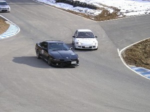 走行開始直前でスタートグリッドに向かうtetuさん。よく見たら今回は結構車高を上げてきていたんですね。 ひそかにしのいサーキット仕様に変えてくるとは恐れ入りました。(^_^;) ドライグリップのしのいサーキット走行は、実は今回初めてだったようですが、初回から上級レベルのラップタイムを出してくるあたりは見事です。 |