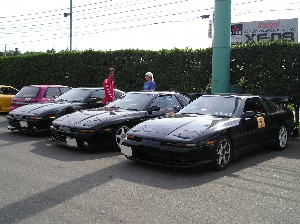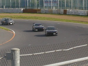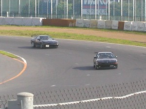 同じくままま号と001号。 今回はタイム計測なしなのでラジアルで走ったんですけど、やはり最後のころはタイヤが垂れてきて、最終コーナーの出口付近ではアウト側に膨らんで結構怖かったです。(^_^;) 途中でタイヤのエア圧調整しなかったので、アンダーステア傾向が強くなったのかもしれません。 というわけで、今回は約3年ぶりの筑波2000でしたが、おいら的には結構満足した走りができたと思います。これから楽しくなってきそうです。(^^) |