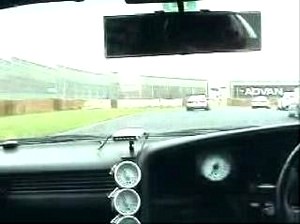 同じ場所で2階の観客席から撮った画像、、、と、車載ビデオの静止画。 前の方が見えないんですけど、青信号が点いたことは前方から爆音が轟いてくることで分かります(笑)。 |