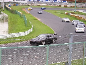第3ヒートのダンロップコーナー手前。 みんな同じラインを通っていきますが、速いクルマの中にはもう少しアウト側から回り込むのもチラホラ見かけました。 |