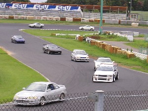 最終コーナーにダンゴ状態で突っ込むクルマたち。 第3ヒートではトップクラスのクルマがダンゴ状態で超ハイペースで周回していたんですけど、当然?!(笑)互いに道を譲るわけないので、接触しないかと結構ビクビクもんでした。(^_^;) おかげでおいらはベストラップ更新できました(笑)。あと、レコードラインの勉強もできてラッキーでした。(^^) |